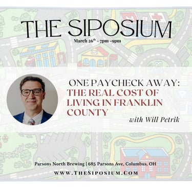 This month, Why is it getting harder to afford to live in Franklin County? Learn more about the realities of low-wage work, rising costs, and economic insecurity in Franklin County. Drawing on local data and research, Will breaks down what it's like for residents with low-wages to try to afford groceries, housing, childcare, and health care in Central Ohio – and why so many families are one unexpected expense away from crisis. The conversation will explore how we got here, what's driving rising costs, and what policy solutions could make life more affordable. Join us for a beer and an engaging conversation!